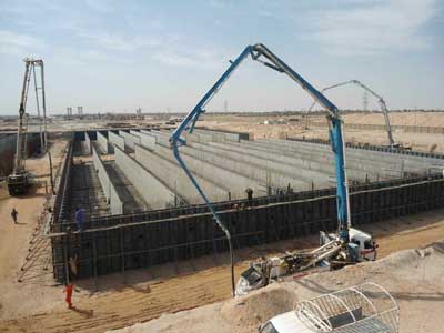 قناة خروج الماء وبناية الضخ الرئيسية وبناية القدرة أضافة الى بناية الأطيان والكيمياوية .